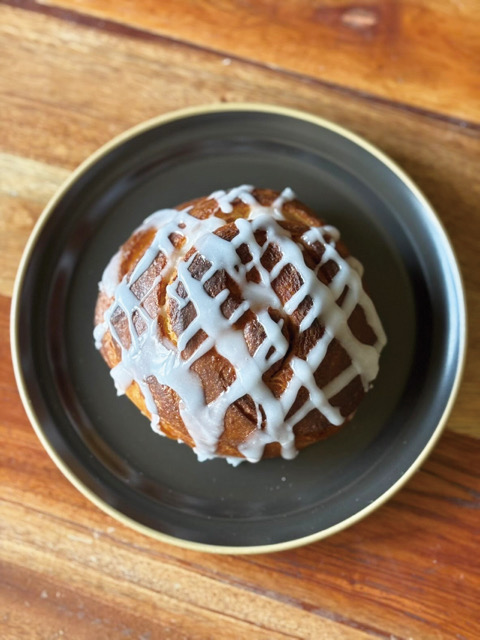 フランス産赤砂糖でキャラメリゼしたブリオッシュ。カリフワ食感に甘く香るシナモン、たっぷりアイシング。