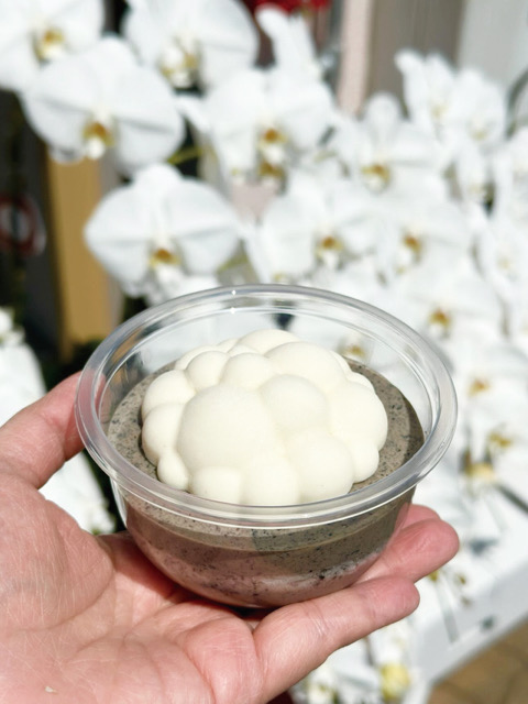 身体に優しい豆腐と黒ゴマのスイーツ。雲のように乗っかっているふわふわ豆腐ムースもかわいい◎