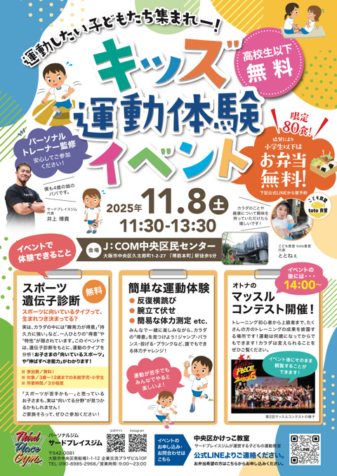 11月8日(土)J:COM中央区民センターにて「キッズ運動体験イベント」が開催されます★
