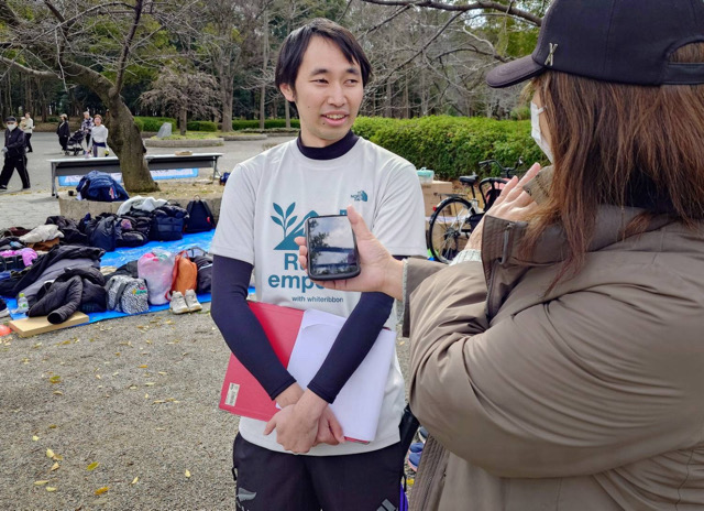 父親が「何かの大会ですか?」と声を掛け、「ホワイトリボンランのチャリティーイベント」と聞くと