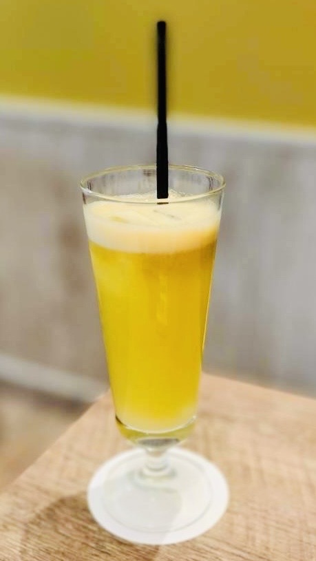 注文後に搾ってくださる“本物のフレッシュジュース”。りんごの爽やかさがダイレクトに感じられる一杯です。
