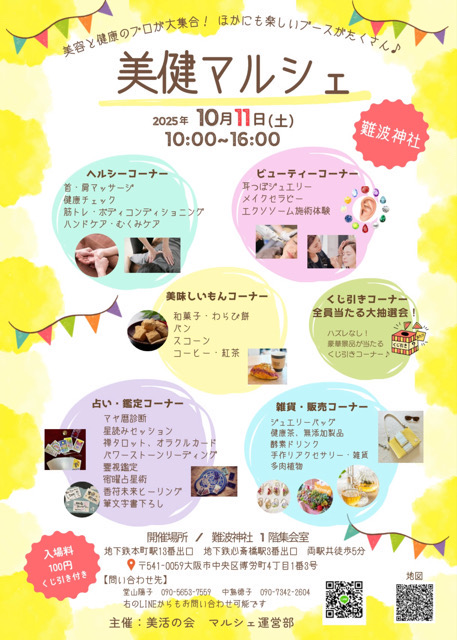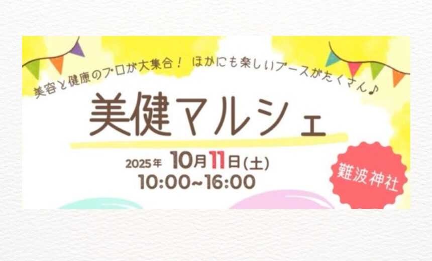 今日は、美容や健康をテーマに、10月11日難波神社で開催される「美健マルシェ」をご紹介します☆