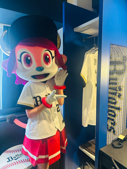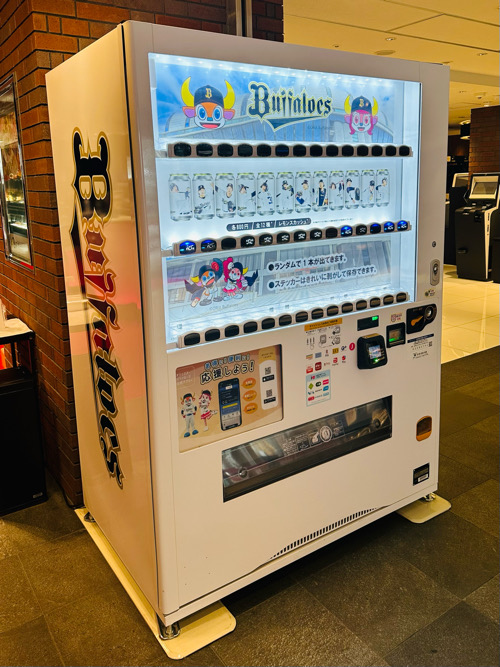 そしてロビーには、オリックス・バファローズ仕様の自販機も登場。常温のレモンスカッシュには選手ステッカー付きという嬉しいプレゼントも。