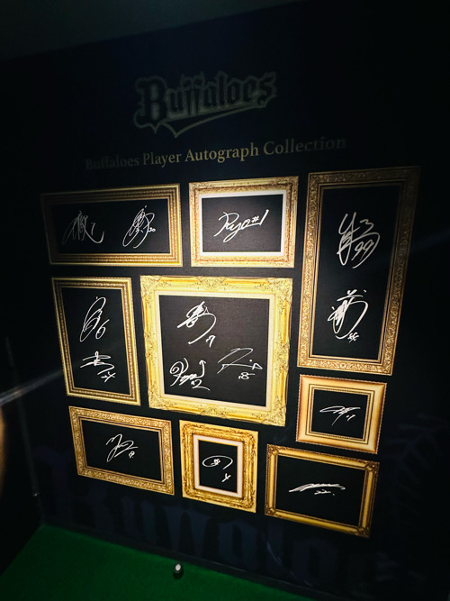 室内には選手たちのサインもずらり。推し選手のサインを探す時間もまた至福のひととき。中央の色紙は、最近WBCでも活躍したあの3選手のものだそう…ファンにはたまらないポイントです。
