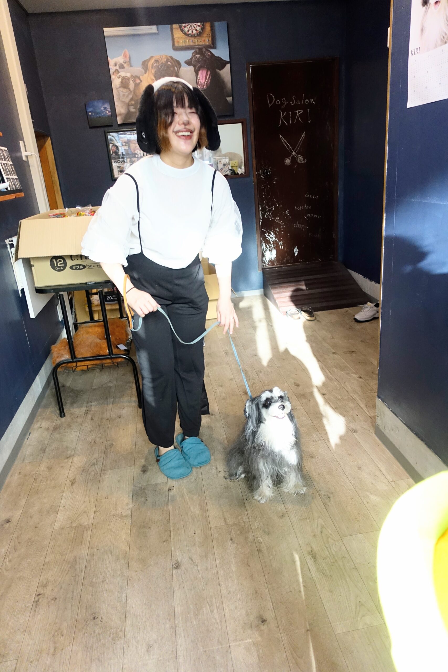 ドッグサロンKiRiではかわいいワンちゃんがお出迎えしてくれ、写真を撮る親子も多数🐶