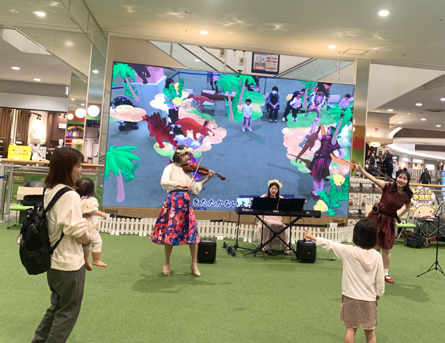 バイオリンとピアノによるコンサートでは、みんなが知っている楽しい曲やクラシック音楽が演奏され、子どもたちはリズムに合わせて体を動かしながら楽しんでいました。