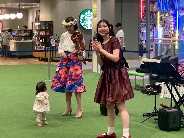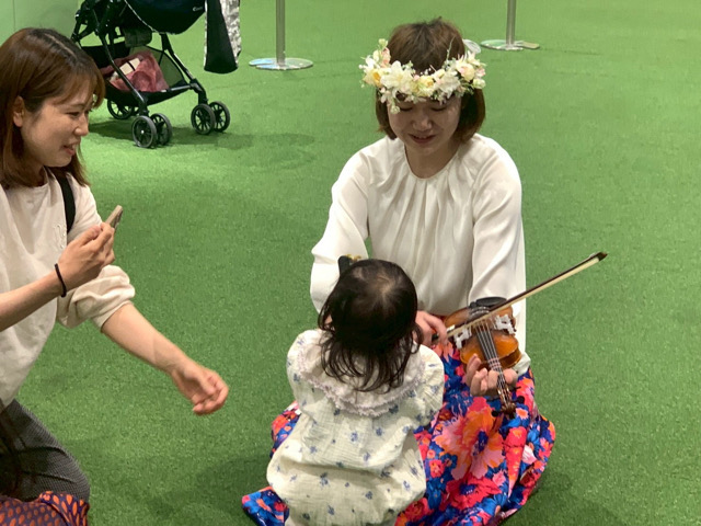 SHIBANIWAからバイオリンとピアノの演奏が始まると、会場には自然と人が集まり、音楽に包まれる空間が広がっていました!