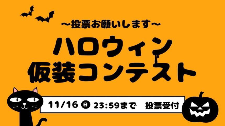 同時開催で、ご応募を受け付けておりました「ハロウィン仮装コンテスト」の投票をスタートいたします!
