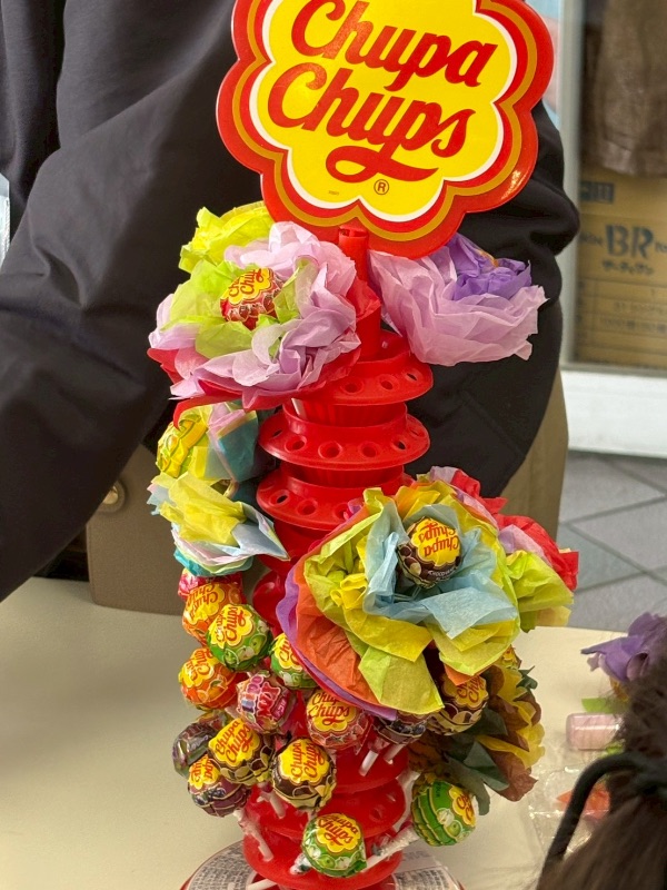「アソーラ」で働いていらっしゃる「ちなりさん」に取材してきました。ちなりさんは、ここのブースでは、お菓子ブーケをたくさん作ったり、チュッパチャップスを袋にたくさんつめて、ふうせんをかざりつけたりしていました。