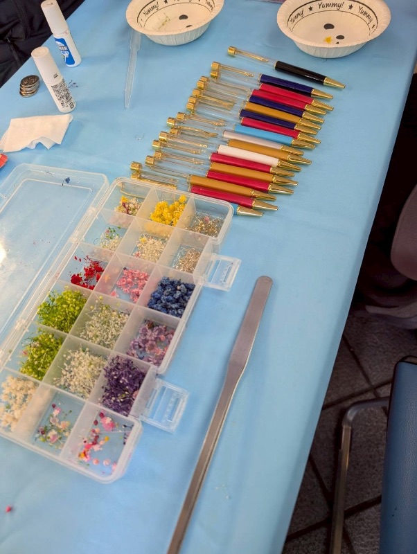 3月14日土曜日。「ベルフラワー」の「いしださん」にしゅざいをしてきました。おみせでは、ハーバリウムボールペンがたくさんあって、とてもお店もすてきでした。