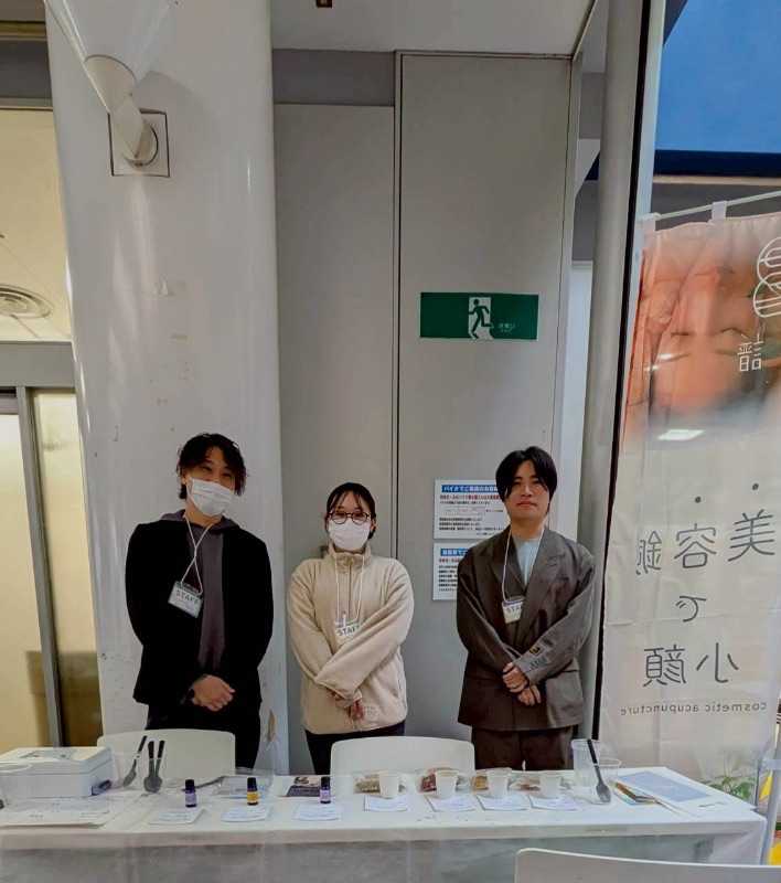 いけださんは、ふだん、てんまばしで、びようばりとリラクゼーションをしています。このイベントを通じて伝えたいメッセージは、地域のお子さんと家ぞくにびようばりを伝えたいそうです。