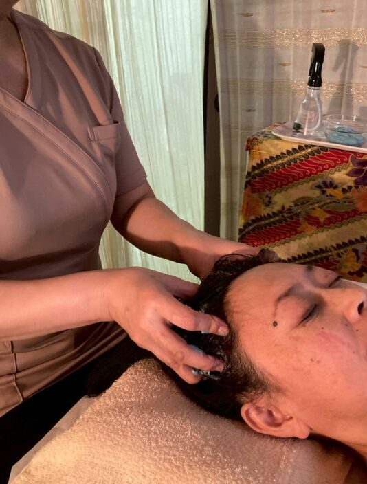 上半身又は足のオイルマッサージ+バリ島の本格的ヘッドスパ。