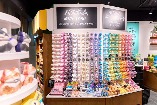 【門真市】「LUSH ららぽーと門真店」カラフルなバスボムがずらり バスボム作り体験も