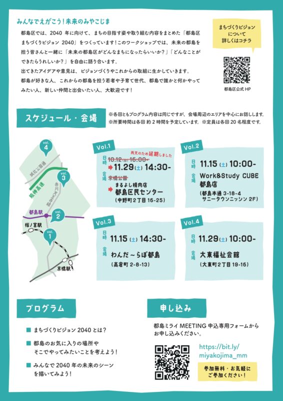 このワークショップでは、未来の都島を担う皆さんと一緒に