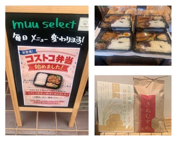 特徴:小分け販売あり、ミューセレクト弁当販売、岡山県産米(精米対応可)、ポップアップ企画予定