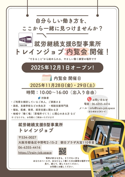 《都島区》11月28・29日には内覧会も!就労継続支援B型トレインジョブ