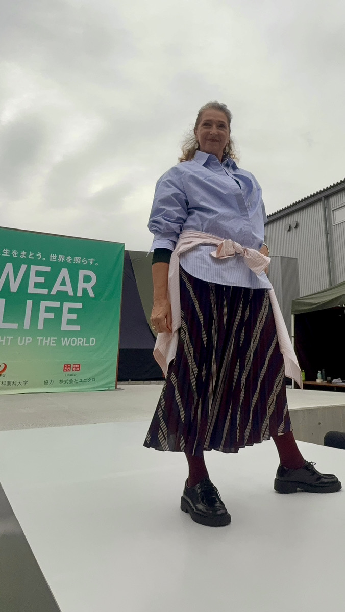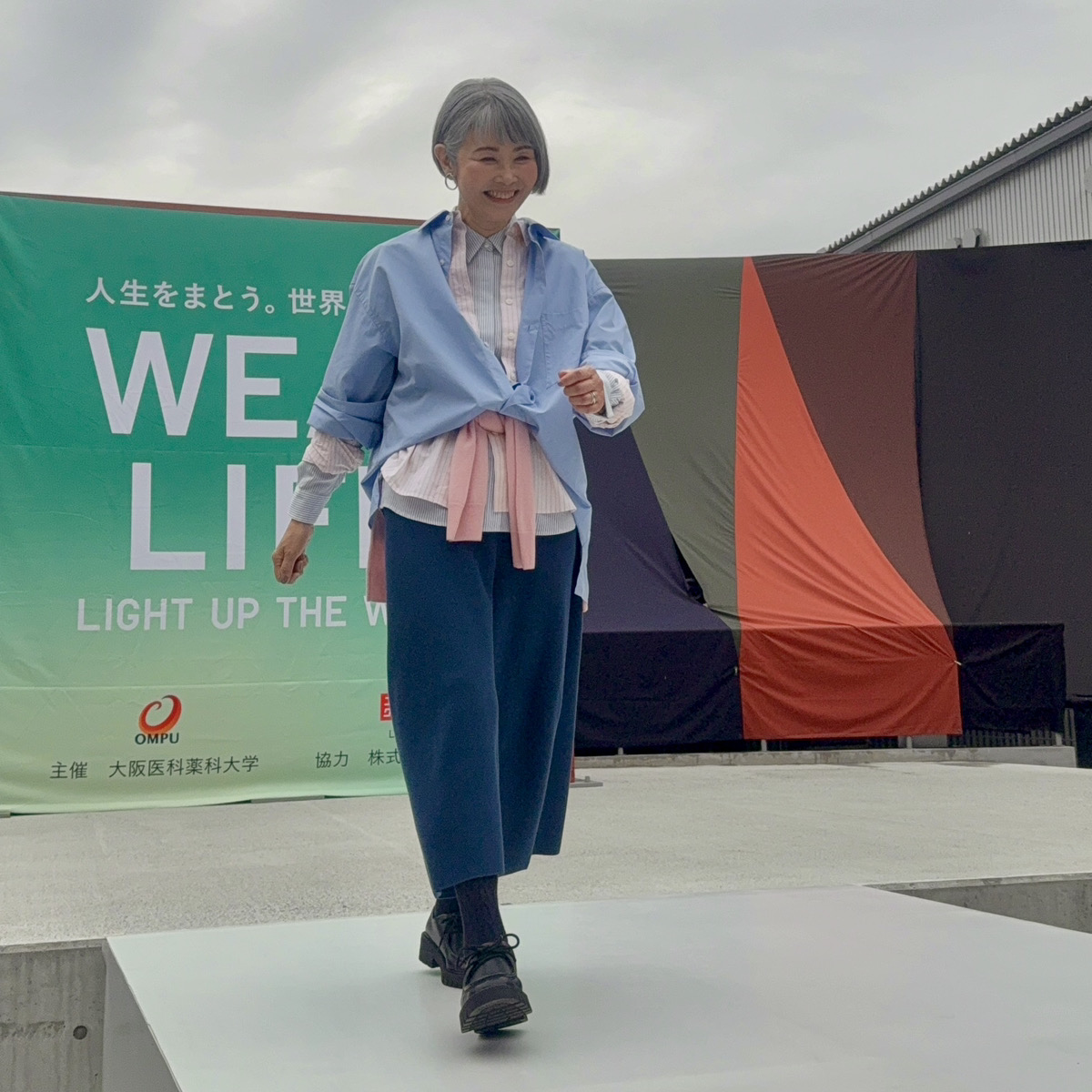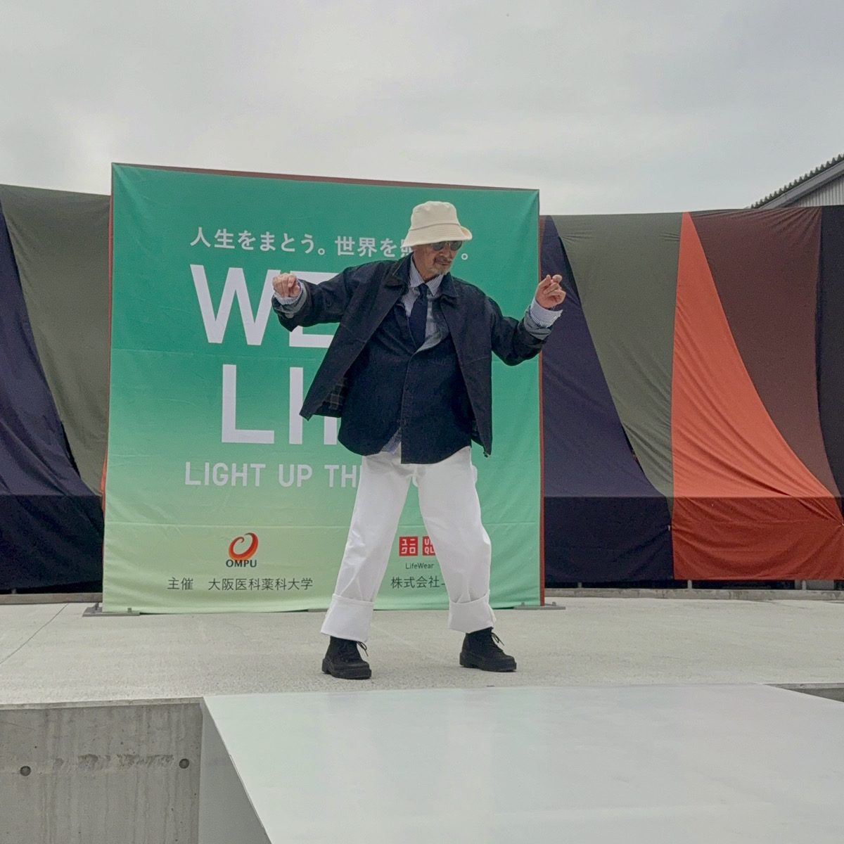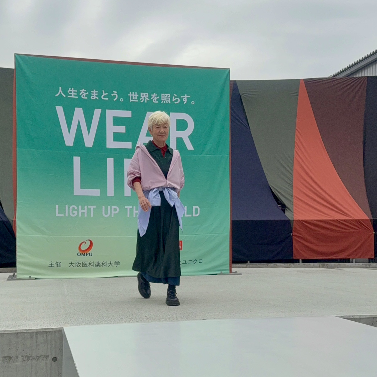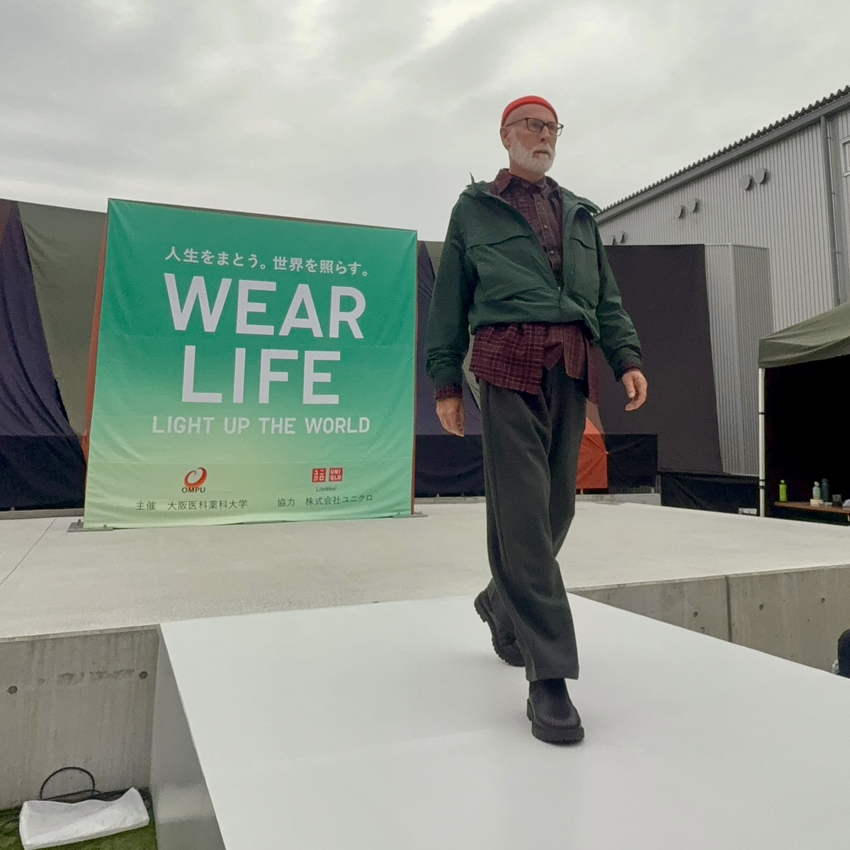 このイベント「WEAR LIFE, LIGHT UP THE WORLD ― 人生をまとう。世界を照らす。―」は、大阪医科薬科大学が主催。ユニクロが協力して開催されたもの。高齢者モデル12名によるファッションショーと、「医療×衣料」をテーマにしたトークセッションも行われました。