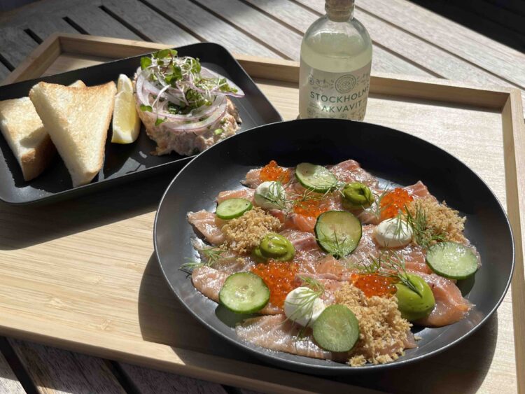 特別メニューは2種類あり、「フレッシュサーモンをハーブ風味マヨネーズ、サワークリーム、ブラウンバターで味付けし、キュウリやディル、いくらを添えたもの」と「スモークサーモンのスプレッドを、玉ねぎ・ハーブ・レモンと一緒にトーストにのせて食べるもの」。どちらも新鮮なサーモンを堪能できます。