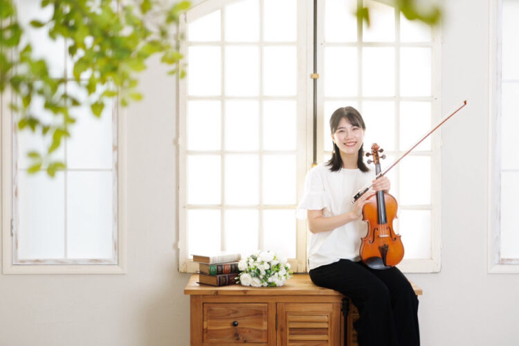 山森温菜(やまもり はるな)さんは大阪府出身。5歳からヴァイオリンを始め、小崎恵理子氏、大谷玲子氏に師事。相愛大学附属音楽教室を経て、京都市立芸術大学音楽学部弦楽専攻を卒業、卒業演奏会にも出演。