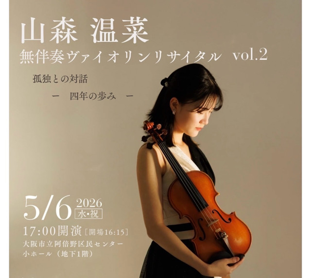 【阿倍野区】山森温菜 無伴奏ヴァイオリンリサイタルvol.2「孤独との対話ー四年の歩みー」